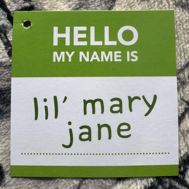 製品ラベルもグラフィティのHELLOステッカーみたいで可愛い!Hello My Name is lil mary Jane