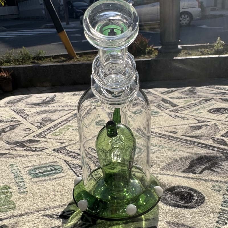 グリーンガラス下部分にはスムーズなスモーキングを楽しめるよう、スリット(泡が細かくなる加工)が施されます。素材はボロシリケイトガラス(耐熱)を使用しています。