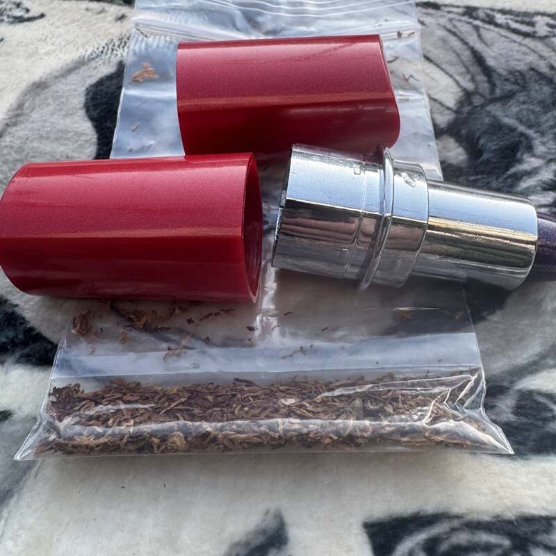 口紅の部分はプラスチックのイミテーションですが、化粧ポーチの中なら紛れるかと