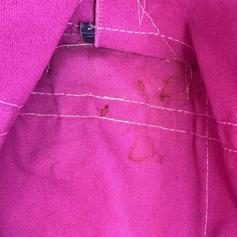 外側にほとんど汚れもみられませんが、内側には汚れがありますので、写真をご参照の上、ご検討下さい。生地感も若干くたっとしてますが、まだまだ コシのある状態です。
