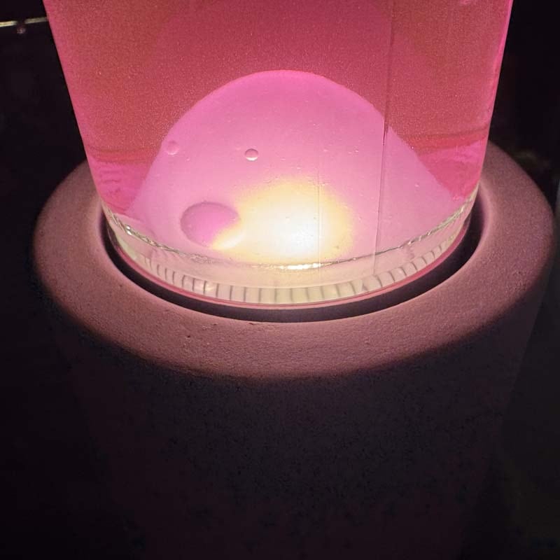 ドリッピングランプでは 電球の付く本体部分がシンプルな筒形のコンクリート製のデザインとなりますが、これまで同様 Waxがゆらゆらと上下する幻想的な動きや、間接照明として楽しめるラバランプならではの魅力をお楽しみ頂けます!