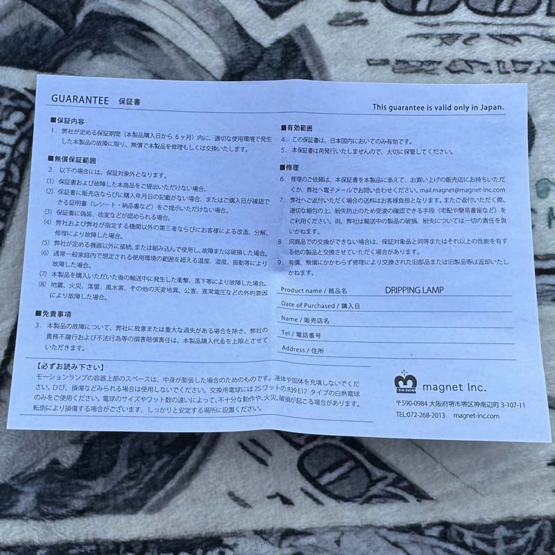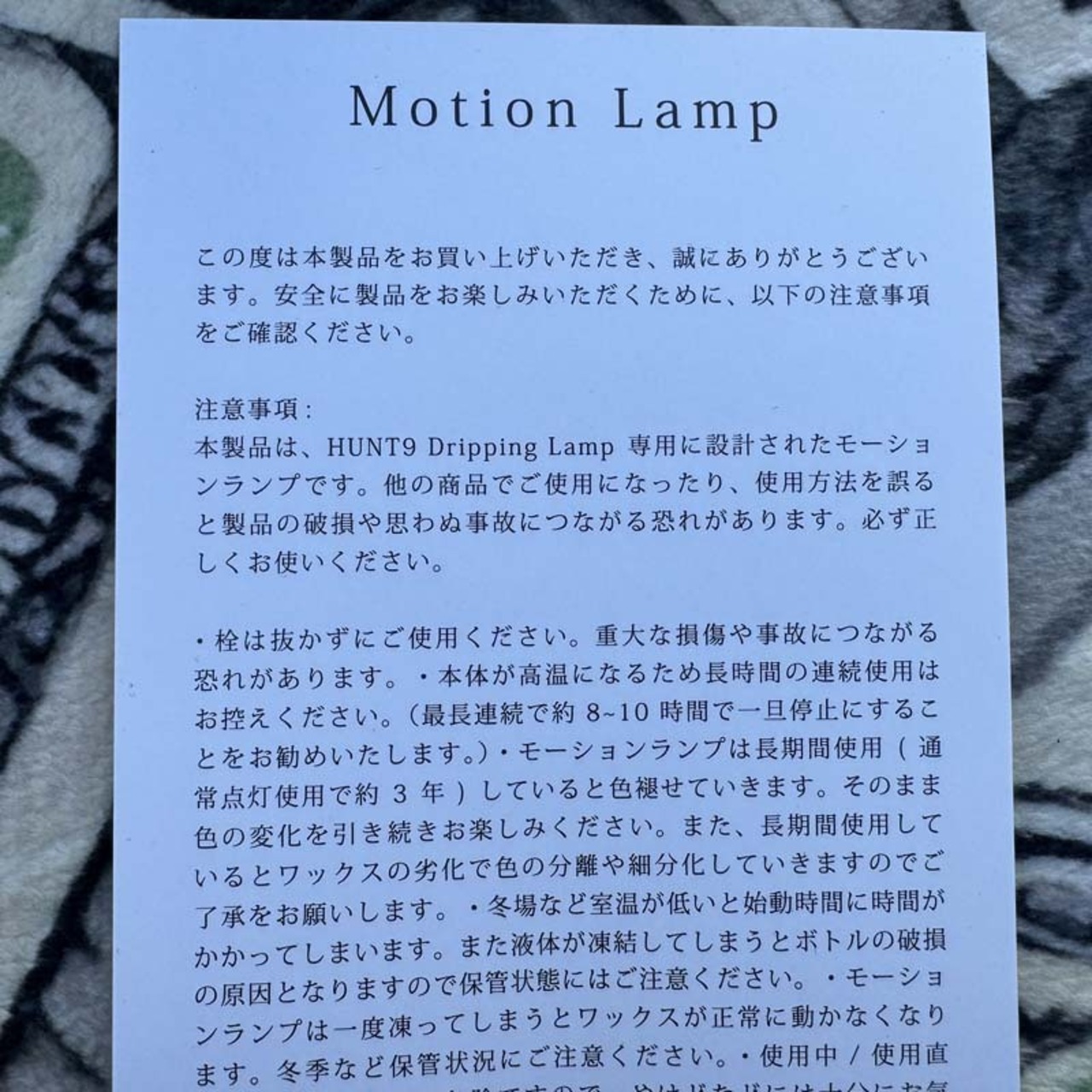 HUNT9のDripping Lampでは、電球が付くコンクリートの筒の部分である 本体(bass)と、液体とWaxの入ったガラス瓶(Refill)が別売りなので(bass)と(Refill)のご購入が必要です。電球( 100V 25W R39 E17) に関しては bassに付いていますが、交換用の電球の取扱いもあるのでご安心下さい。