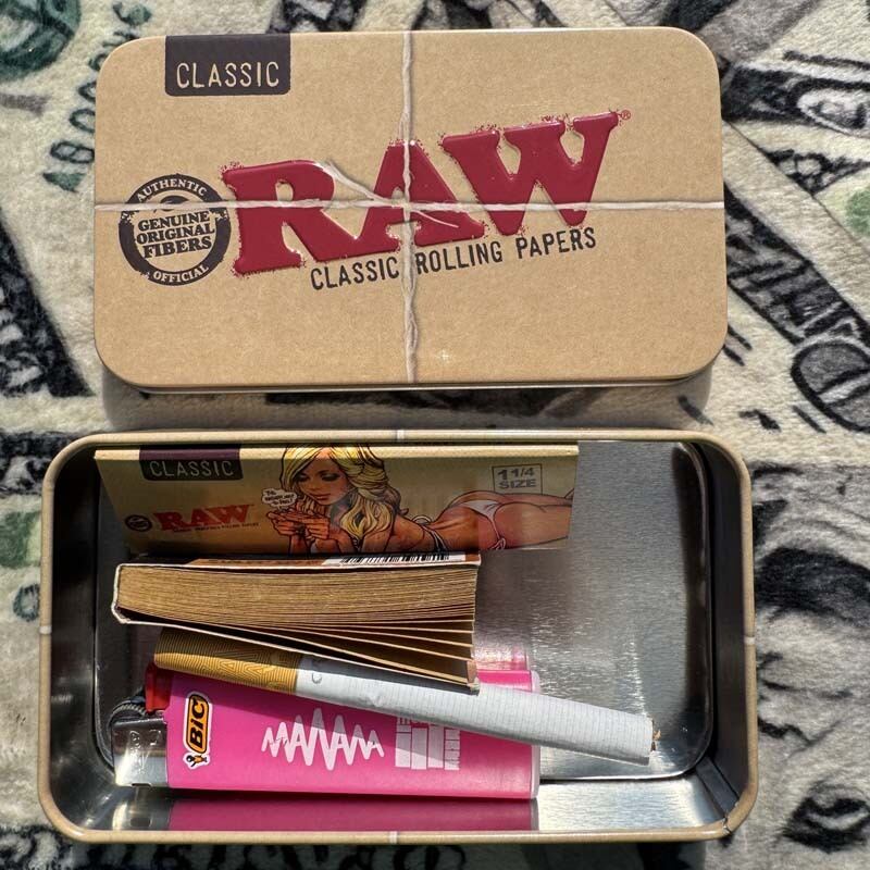 RAW Classic デザインのスチール製小物入れで、横幅もあるので、ジョイントペーパー、クラッチ、ライター、巻き貯めした煙草の収納など使い方は自由自在!シンプルなデザインが◎!