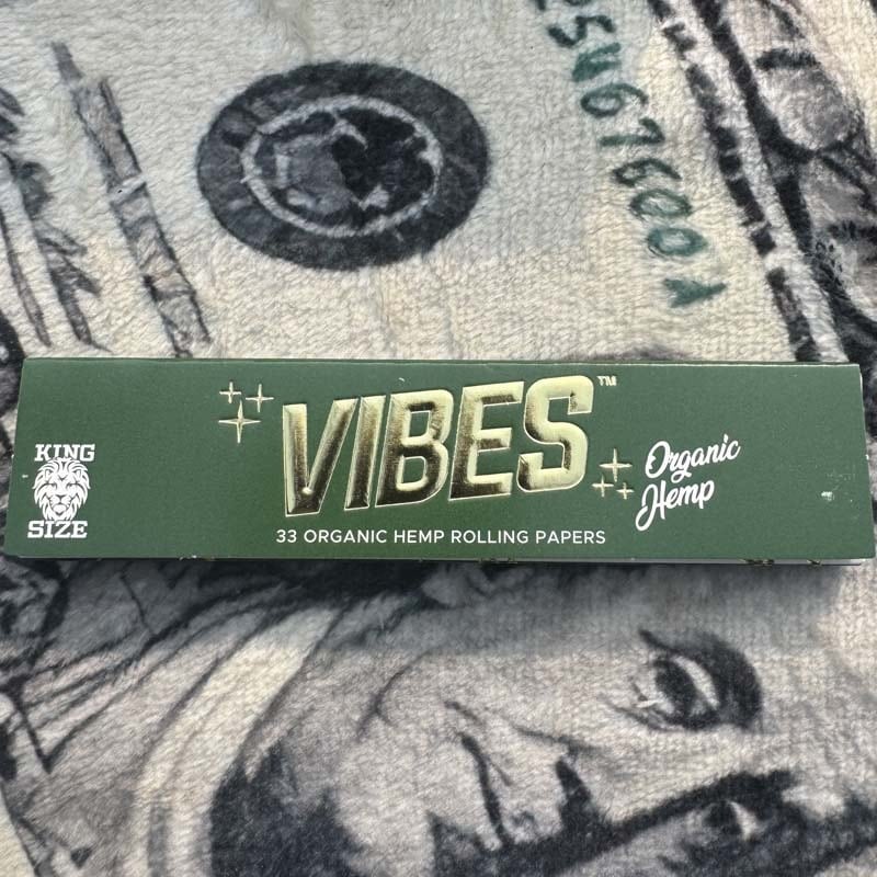 海外のディスペンサリー、日本のスモークショップでもすっかり定番 VIBESのローリングペーパーより、キングサイズスリム のオーガニックヘンプ(Green) ローリングペーパーのご紹介となります。