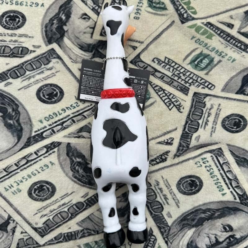 BRONX BROTHERS JACKY BASTARD、ウシ キャラ BENJI BINGE チキンのおもちゃ シャウティングチキン系のちょいワルアニマル版 ブロンクスブラザーズ、ソフトビニール製のお腹を軽く押すとけたたましく鳴くオモチャ、ペットのおもちゃ
