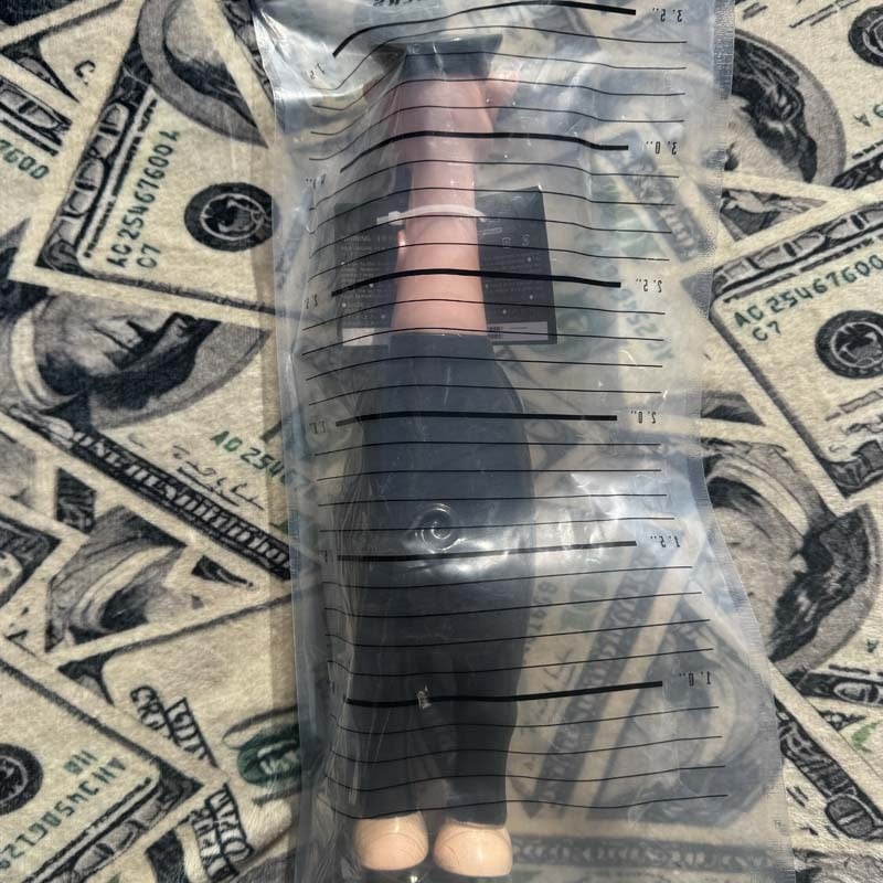 マグショット、mug shotを連想するハイトチャート身長計が描かれたデカパケに受刑者番号の入った製品ラベルと完全 刑務所仕様wでのお届けとなります