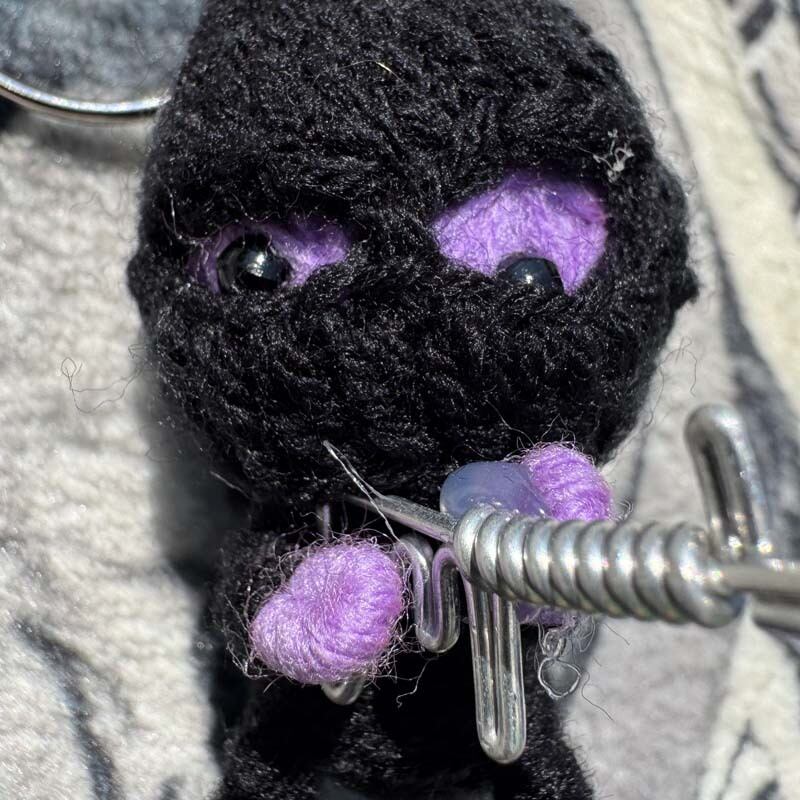 こちらでは、ゲリラみたいな目出し帽を被ってマシンガンを持つ ブードゥー人形で紫、黄、赤と色が異なる為、ご指定可能としました。