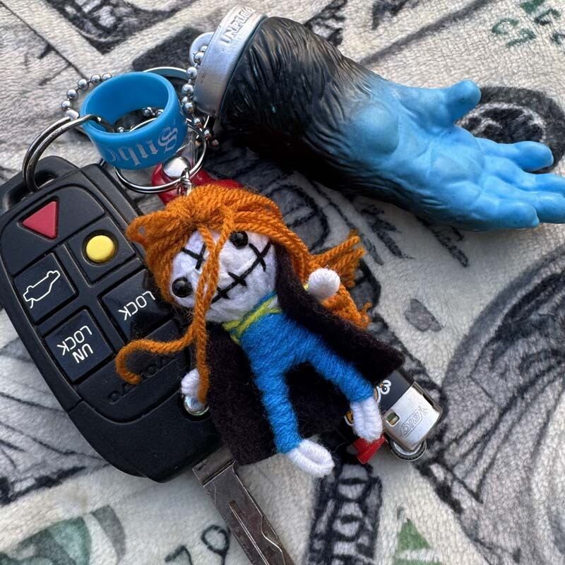 タイでお守りや願掛けとして人気のブードゥー人形のキーホルダー、ラッキーチャーム03、ドレッドヘアー&マント、願い事、魔除け、身代わり人形、Voodoo Doll Keyholder