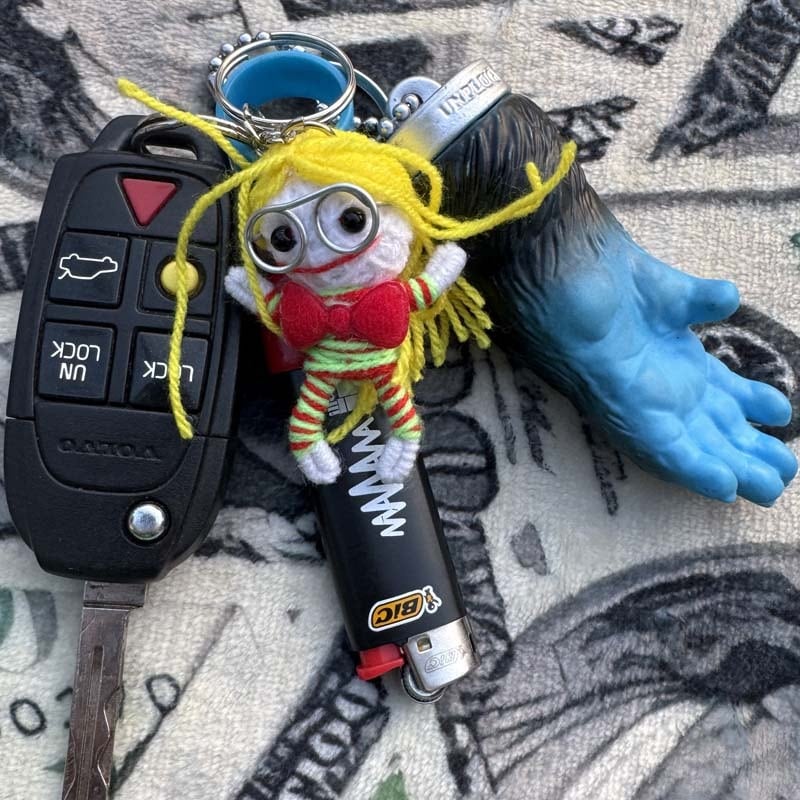 タイでお守りや願掛けとして人気のブードゥー人形のキーホルダー、ラッキーチャーム04、ドレッドヘアー、メガネ、蝶ネクタイ、囚人服、願い事、魔除け、身代わり人形、Voodoo Doll Keyholder