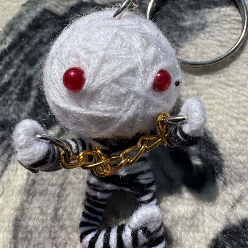 こちらでは、手錠をかけられた囚人のブードゥー人形のご案内で、雰囲気が近いのでどの子が来るかお楽しみでお願い致します。