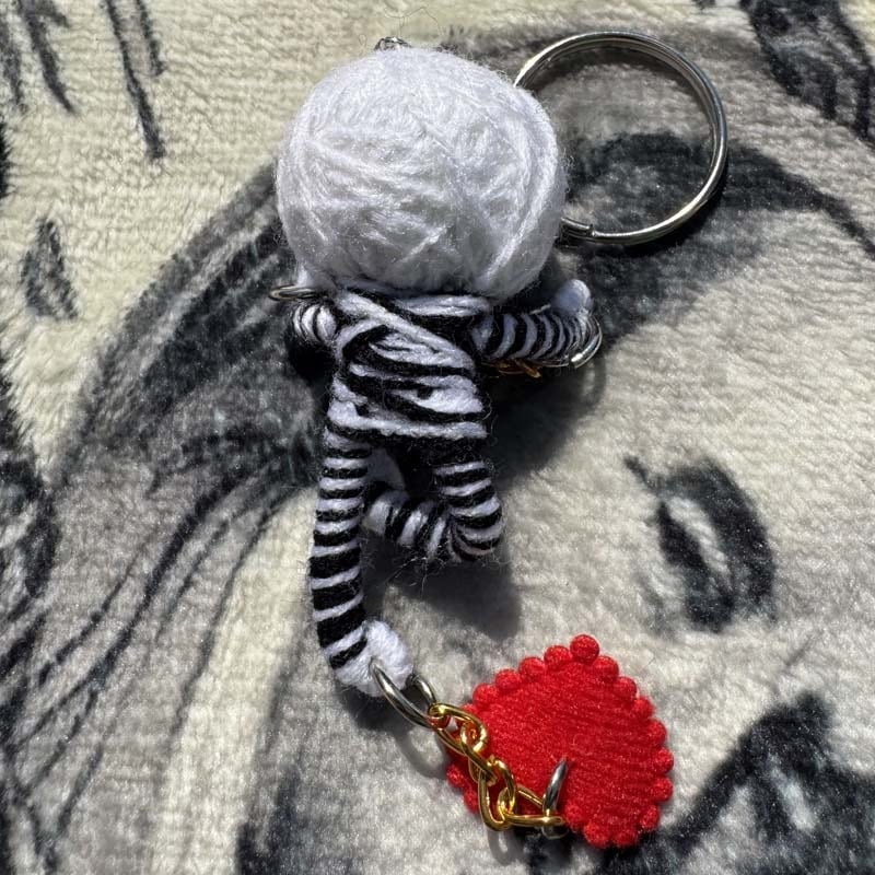 タイでお守りや願掛けとして人気のブードゥー人形のキーホルダー、ラッキーチャーム05、手錠をかけられた囚人+ハート、願い事、魔除け、身代わり人形、Voodoo Doll Keyholder