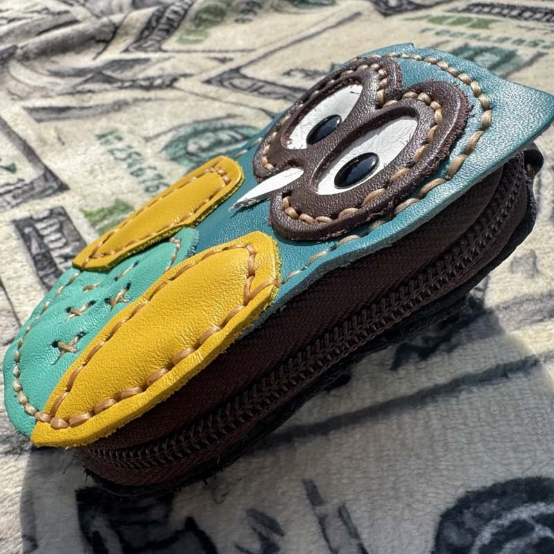 Popでとっても可愛いフクロウのデザインで 革の質感もとても素敵! アンティークゴールドの金具も360度回転の気の利いたパーツが採用。背面にはカードポケットもあり、5枚位のカードも収納可能!