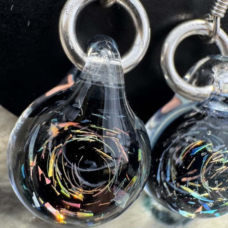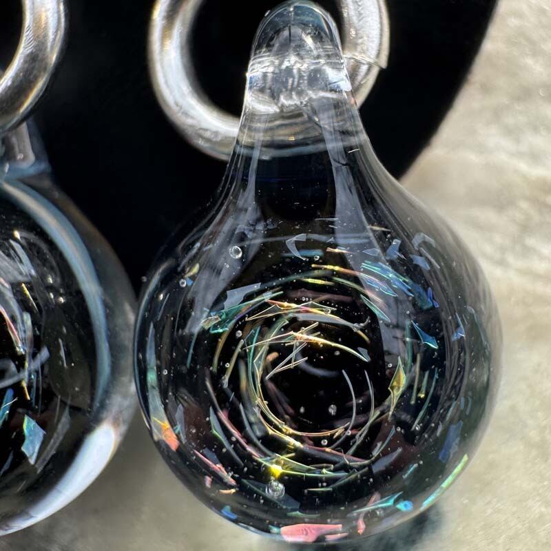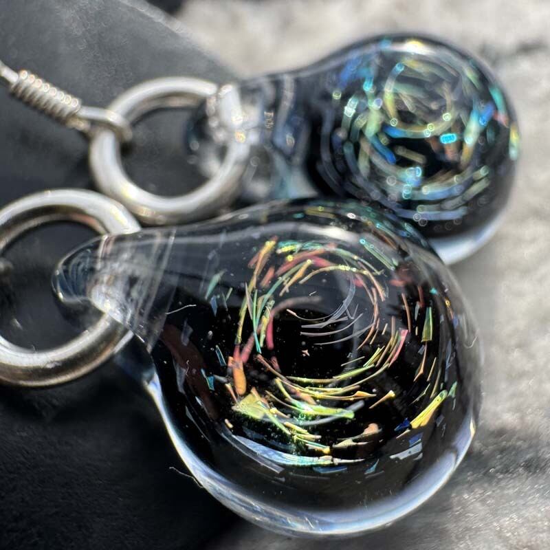 麻覇王 マハオ レインボーxスペース ピアス O-266 Pyrex Glass と925シルバーを使用したアートガラスのアクセサリー、宇宙デザイン