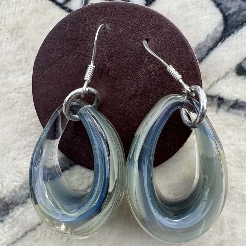 麻覇王 マハオ リングデザイン ファナ ピアス O-549 Pyrex Glass と925シルバーを使用したアートガラスのアクセサリー
