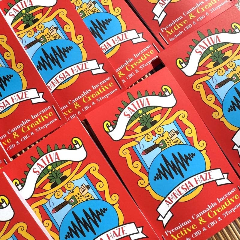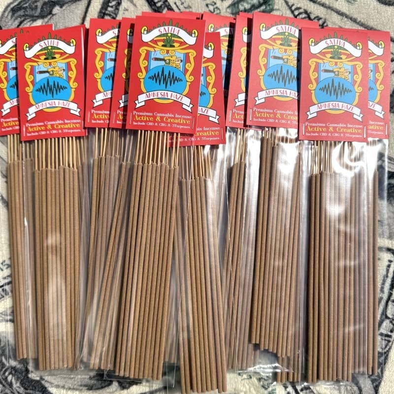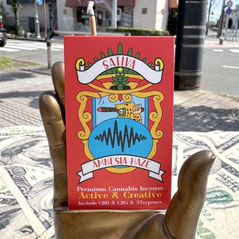 サティバ優勢のアムネシアヘイズをプロファイル、リモネン ミルセン ベータカリオフィレンと3種類のテルペンとCBD、CBG 2種類のカンナビノドを配合したアントラージュ効果満点のプレミアムインセンス!!!
