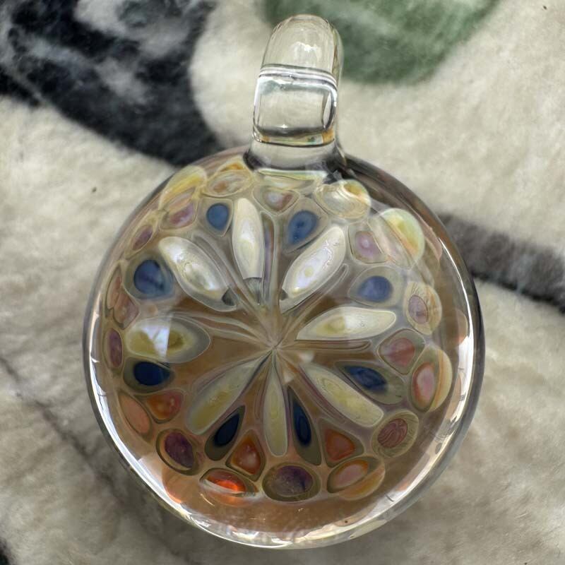 麻覇王 マハオ facebook ペンダント N-2365 紐付き Pyrex Glass を使用したネックレス、Buds デザイン