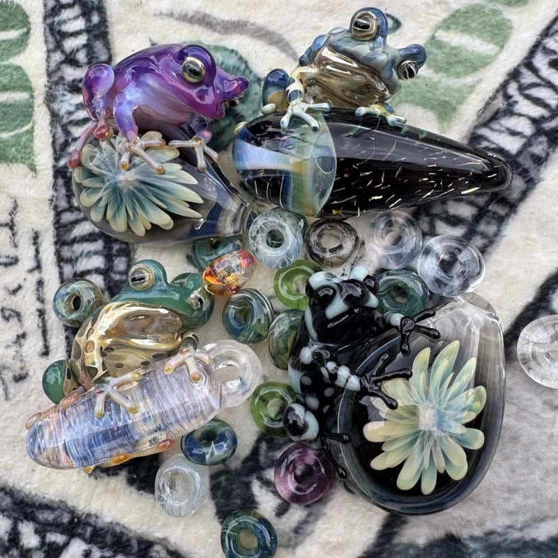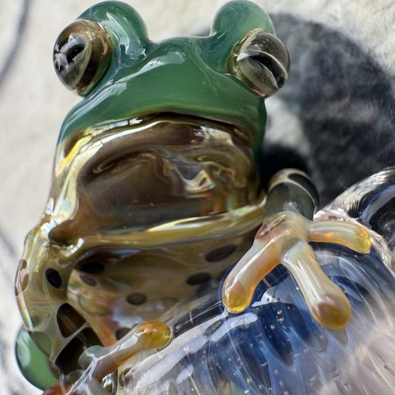 麻覇王 マハオ Frog x 水晶 ペンダント N-2284 紐付き パイレックスガラス、日本製、3.8cm ¥5800(税込)