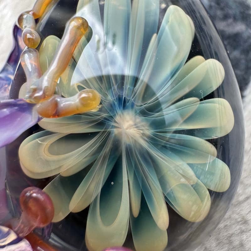 麻覇王 マハオ 紫カエル x ファナ ペンダント N-3424 紐付き パイレックスガラス、日本製、4.8cm ¥7400(税込)
