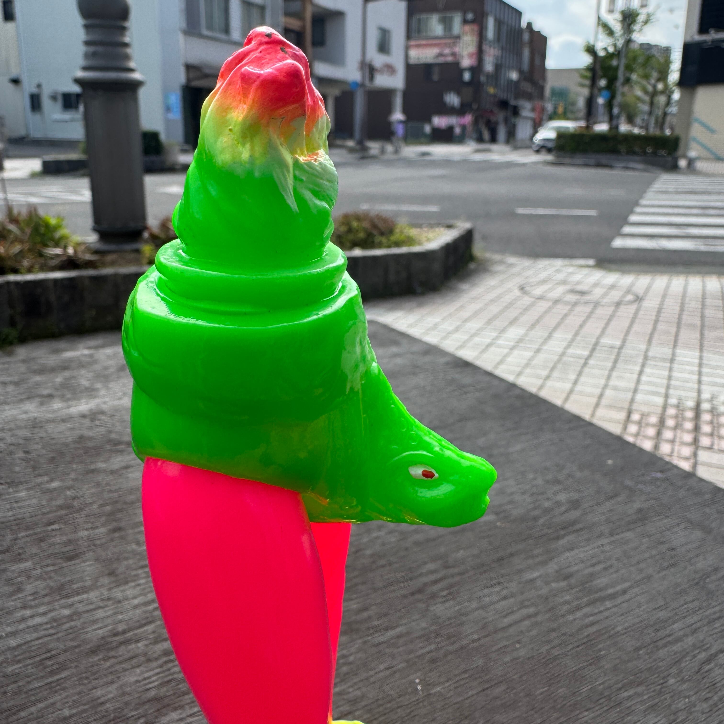 manana outbreak 個人のSNSで、色鮮やかな不思議な絵や、謎のソフビ、 Pop Upイベントの模様を見かけ、TANAさんの存在を知ったのですが、TANAさんのデタラメな世界観、懐かしさと愛嬌のあるモチーフ、昭和のパチ玩具を連想するブート感 、強烈な色彩感覚に僕も完全にヤラレましたw