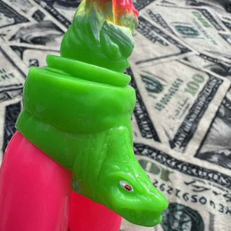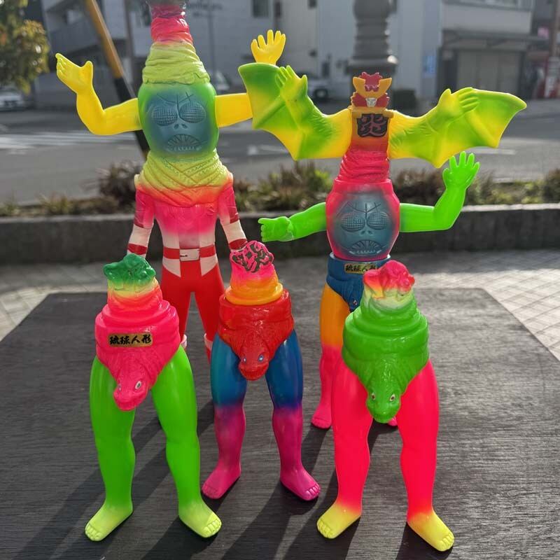 2019年頃 最初は捨てられたオモチャを再利用してリサイクルTOYの製作を開始したTANAさん、その後 ソフビ制作の当初は金型をおこす予算が無かった為下半身だけで制作、その1st モデルのマジムン LVEL1がこちらとなりますw その後下半身が売れたお金で上半身を制作して現在はLEVEL6までリリースされていて上半身や腕、翼なども追加されたり、カスタムフィギュアまで無事リリースされてます。カッケーw
