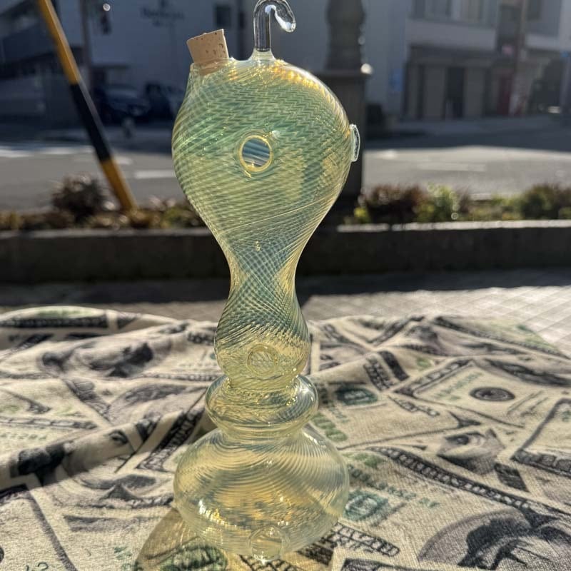 ミルキーな単色が際立つ仕上がりですが、全てインサイドアウトと言う難しい技法で、ガラス菅の内側に、シルバーを駆使してスパイラルのラインを描いています。