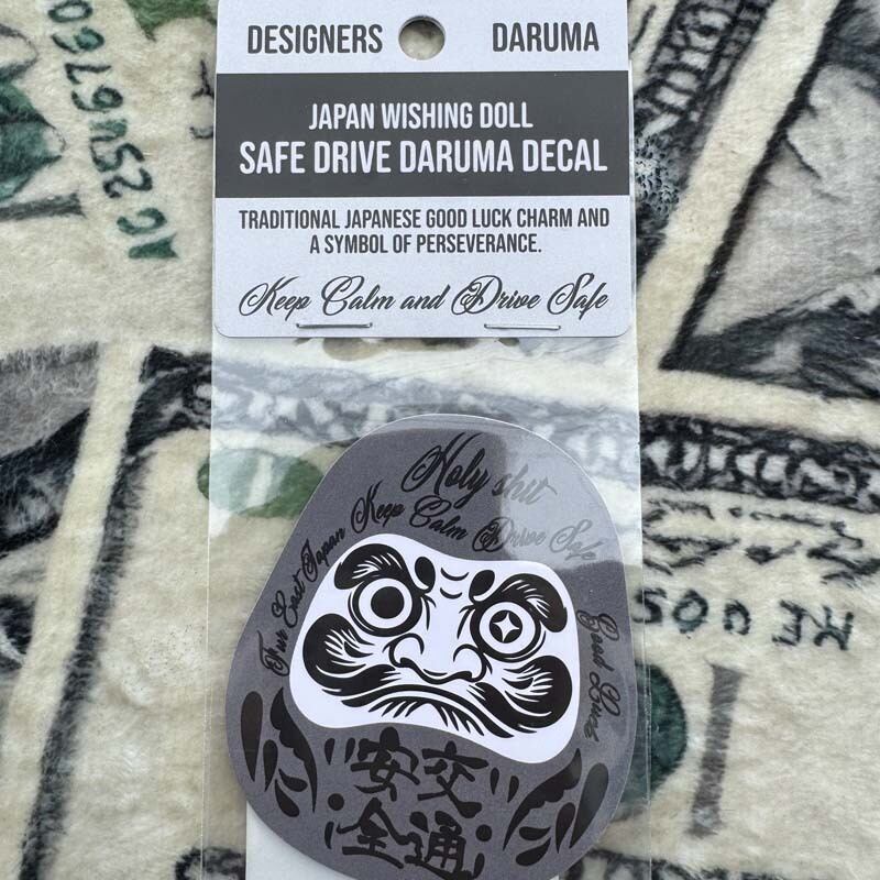日本の縁起物の達磨がモチーフとなりますが、カリグラフィータッチなフォントで交通安全、
