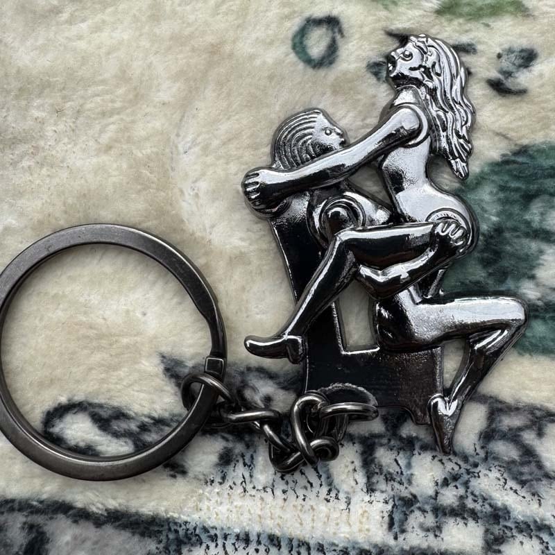 アメリカン・アダルト・ジョーク強めS〇X POSITION 体位2、対面座位、ギミック有で腰がカクカク動くメタル キーホルダー、FUNNY LOVERS SEXY METAL KEYCHAIN