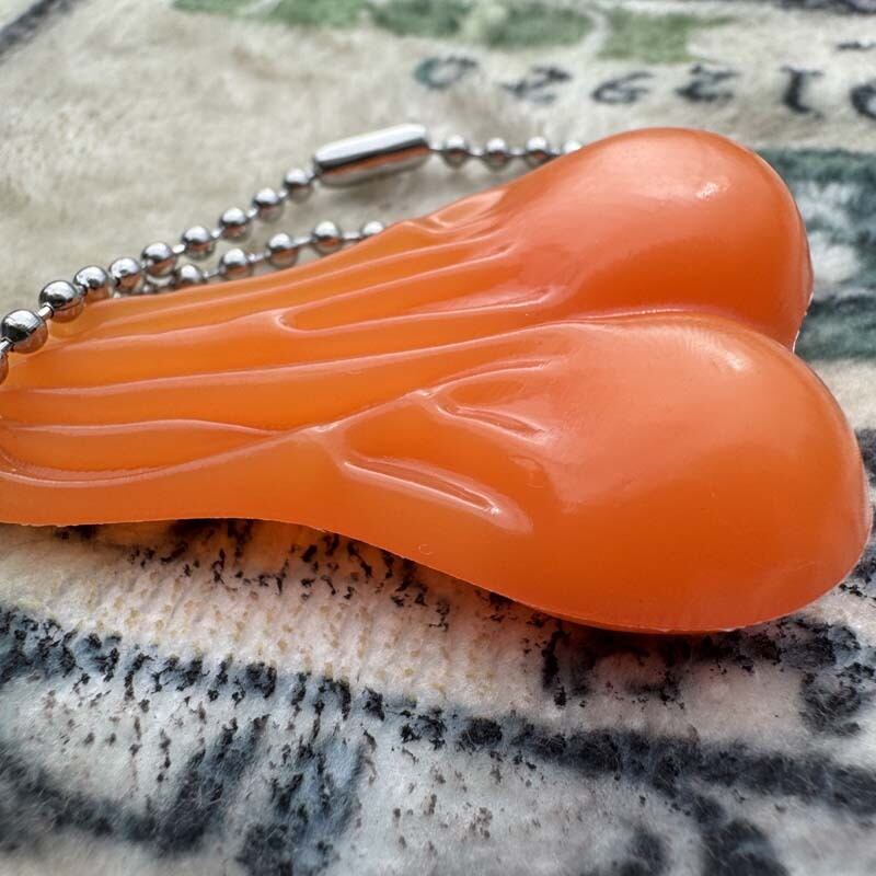 幸運を呼ぶ?魔除けにも!牛の睾丸、金玉、ゴールドxラメ、クリアオレンジ、PVC 車体を傷つけないハードラバー製 ブルズボール キーホルダー、PVC Bulls Ball Keyholder