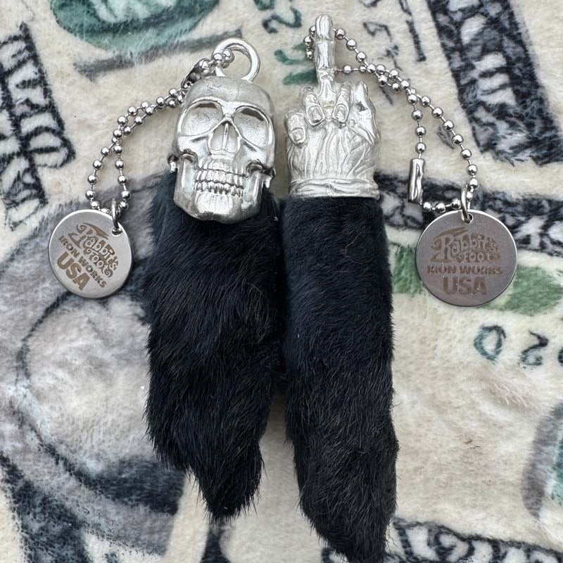 幸運を招くお守り 本物のウサギの足を使ったラッキーラビットフット キーチェーン、FUCK YOU/Black Lucky Rabbit’s Foot Key Chain Lucky Charm Keyholder