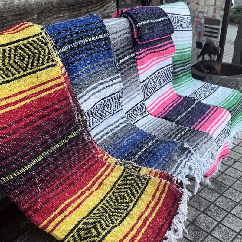 新品のリサイクル メキシカンブランケット(メキシコ製)が再・再・再入荷!インテリアにも車にも1枚あるだけで 西海岸の雰囲気満点!