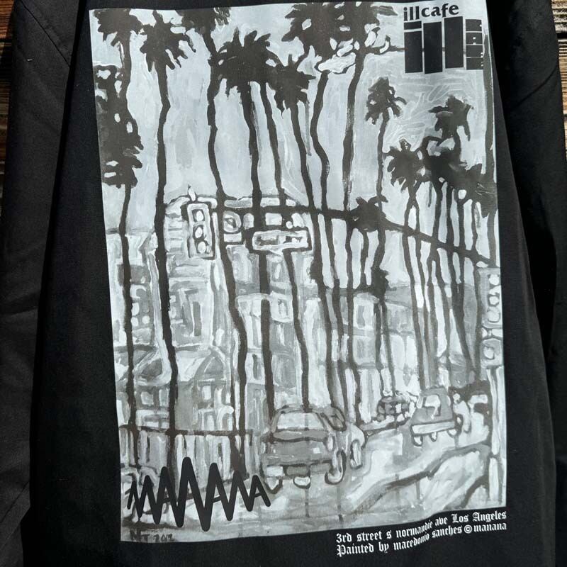 古くからのお付き合い LA在住の画家 macedonio sanches が描いた LAの風景を no name にDTFプリントで再現して頂きました!