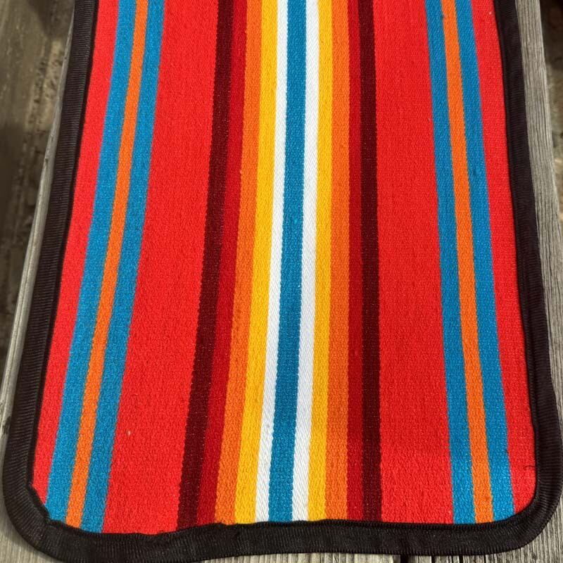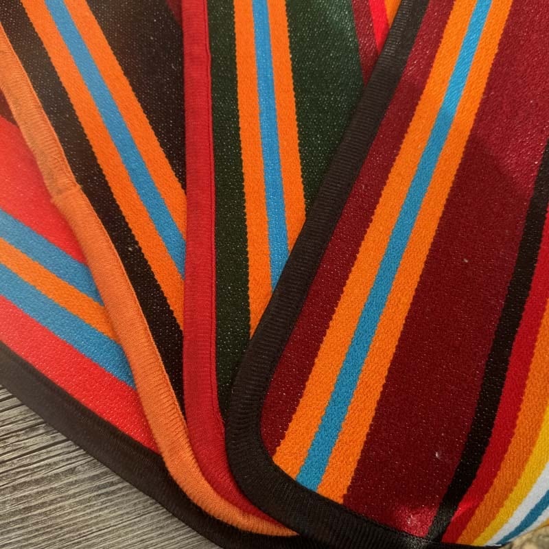 レインボー・サラッペのような雰囲気の配色を楽しめる、ボーダー柄のプレイスマット、ランチョンマットです。