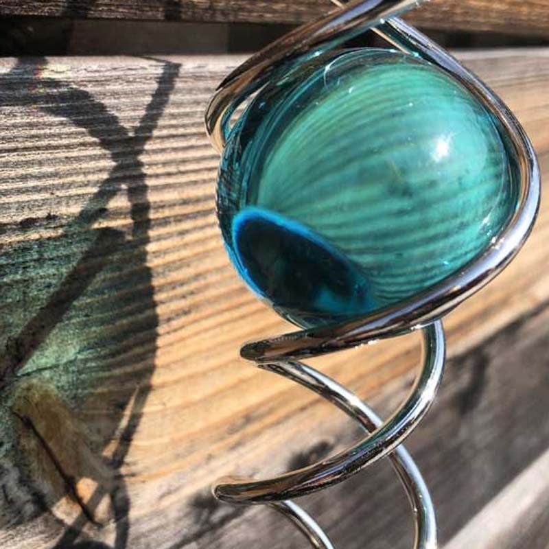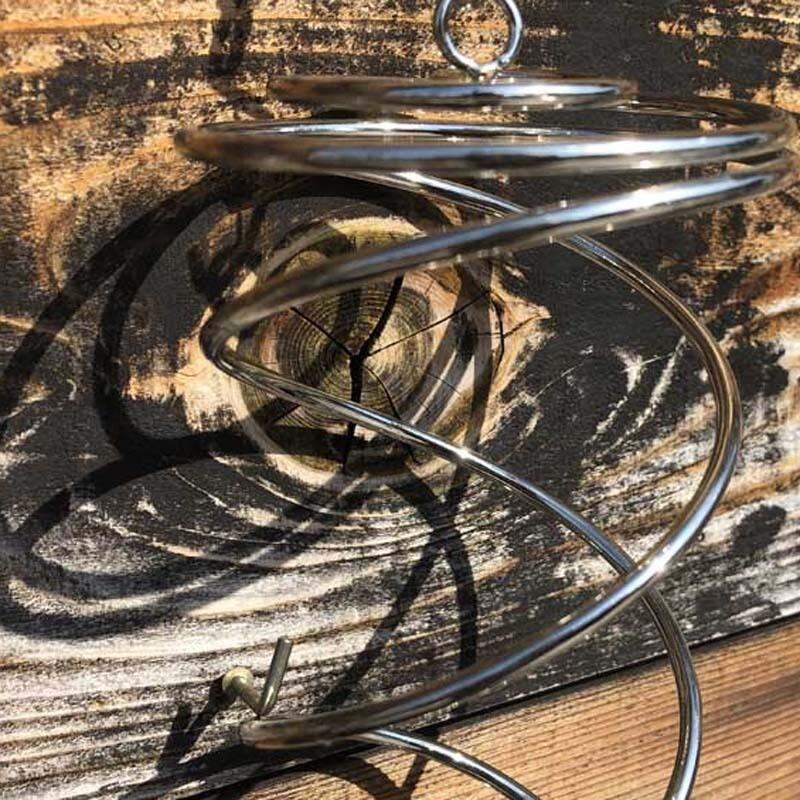 こちらは、ウィンドスピナーとは異なるので、スローモーター 推奨ですが、人力で右回しにすると2個の玉が下がって見えて左に回すと2個の玉が上がって見える錯視効果満点のキネティック・アートなモビールです!カラーのガラス玉は、錯視効果を狙ったパーツみたいです。部屋でのご利用は勿論ですが、キャンプに持って行ってもテンション上がると思います。