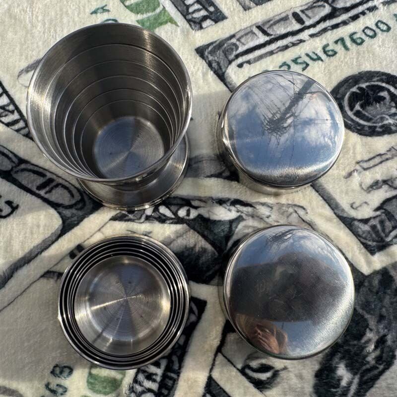 ステンレス製 伸縮型 軽量カップ、ショットグラス x2