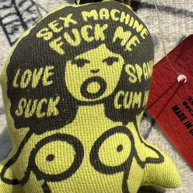 ラブドールのミスジェニファー笑 SEX MACHINE FUCK ME LOVE SPANK SUCK CUM IN、背面にはI' II MAKE YOUR FEEL SO GOOD.気持ちよくしてあげるメッセージ!